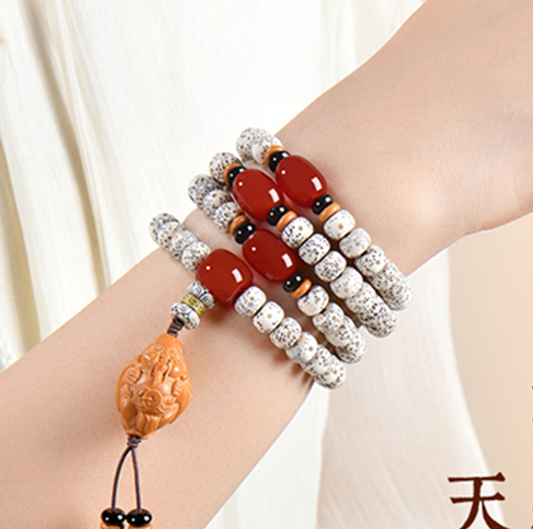 "Bodhi" refers to the name of the supreme Buddhist path. Xingyue Bodhi is the seed of the yellow rattan, also known as the red rattan seed. Each bead is covered with evenly distributed black dots on its surface, and there is a natural