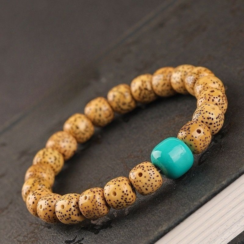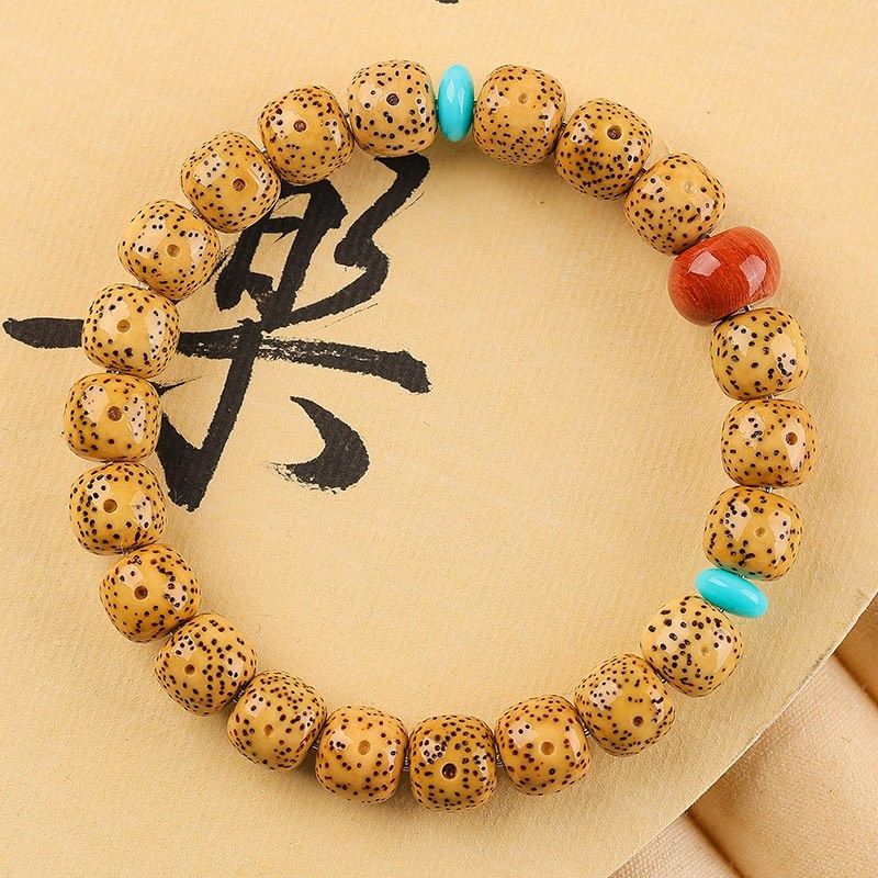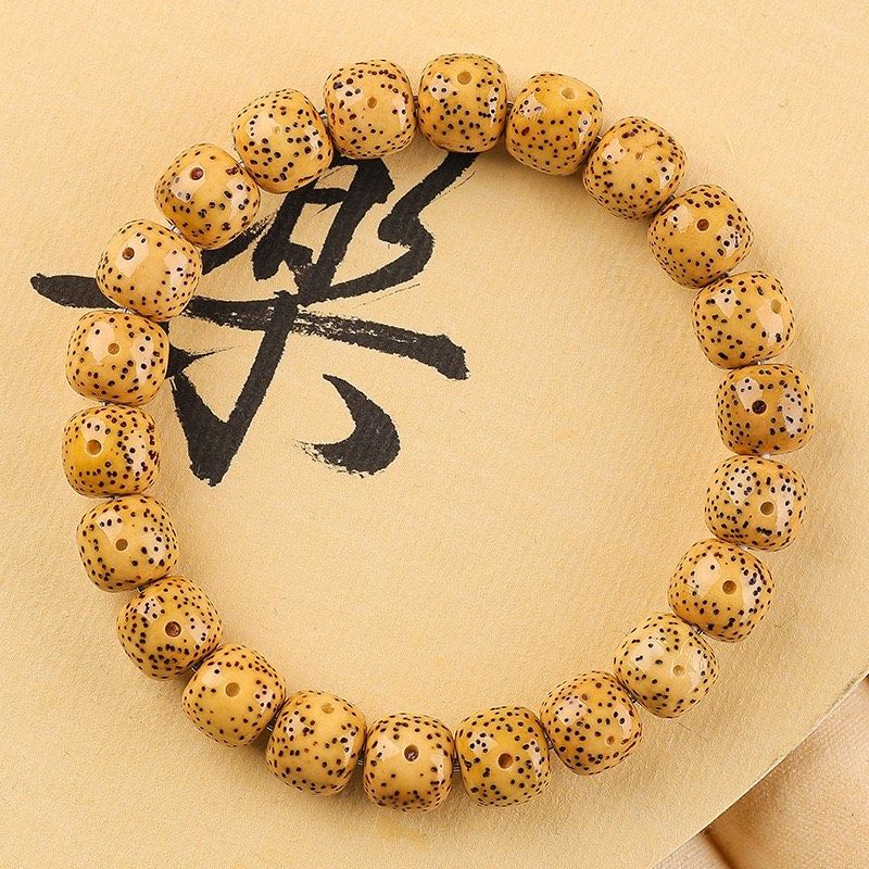 Xingyue Bodhi, carved from yellow rattan seeds, with star-like inlaid dots and gently curved moon-shaped marks—embodying the night sky's beauty.