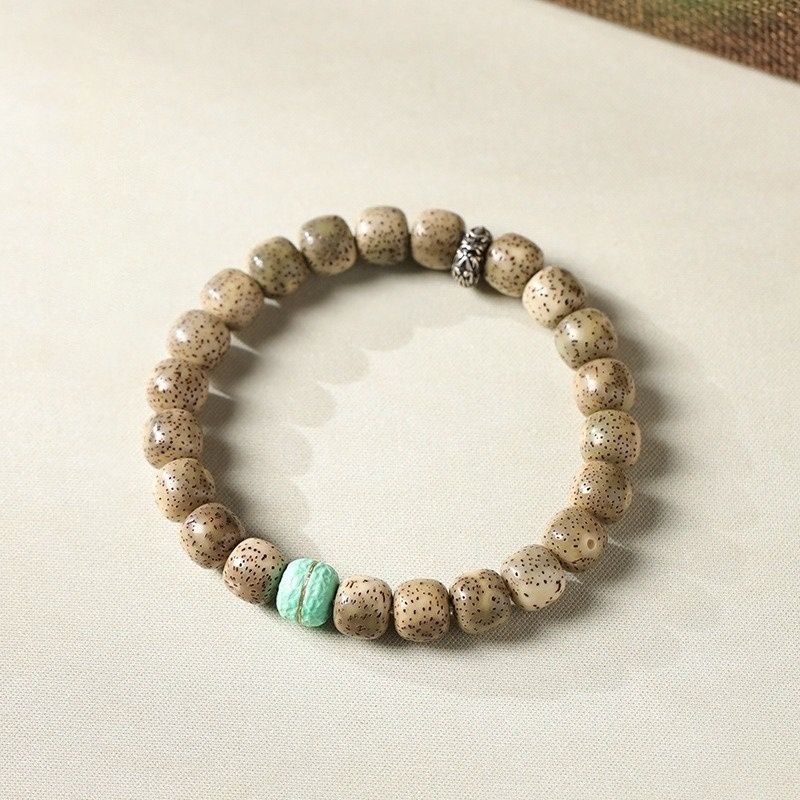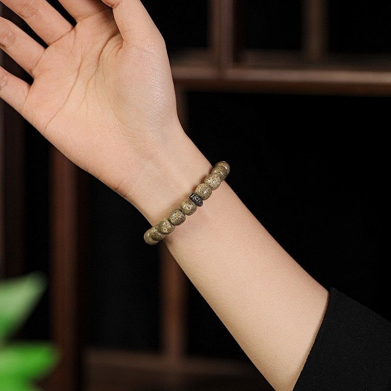 Xingyue Bodhi, carved from yellow rattan seeds, with star-like inlaid dots and gently curved moon-shaped marks—embodying the night sky's beauty.